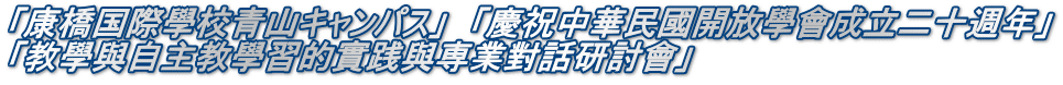 | 12月11日には、「康橋国際學校青山キャンパス」を訪問し、「慶祝中華民國開放學會成立二十週年」として「教學與自主教學習的實践與専業對話研討會」が開催されました。 | ||