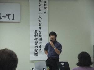 | 【分科会D;第5学習室】 「子ども一人ひとりを大切にする教科学習の実際」 ・大分県佐伯市立 佐伯南中学校 石田 周一 ・福岡県朝倉市立朝倉東小学校 手島 孝之 ・東京都台東区立東泉小学校 五十子 晴美(学校名は実践時) ☆コーディネーター 東京学芸大学 佐野 亮子 ![]() ![]() ![]() ![]() |